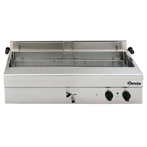 Friteuse professionnelle d’une contenance de 2 x 8 litres avec 2 cuves embouties, 2 paniers et...